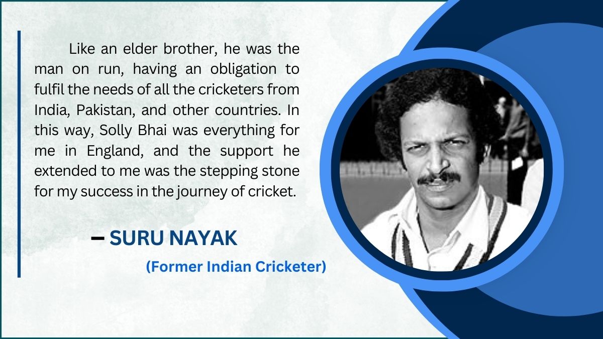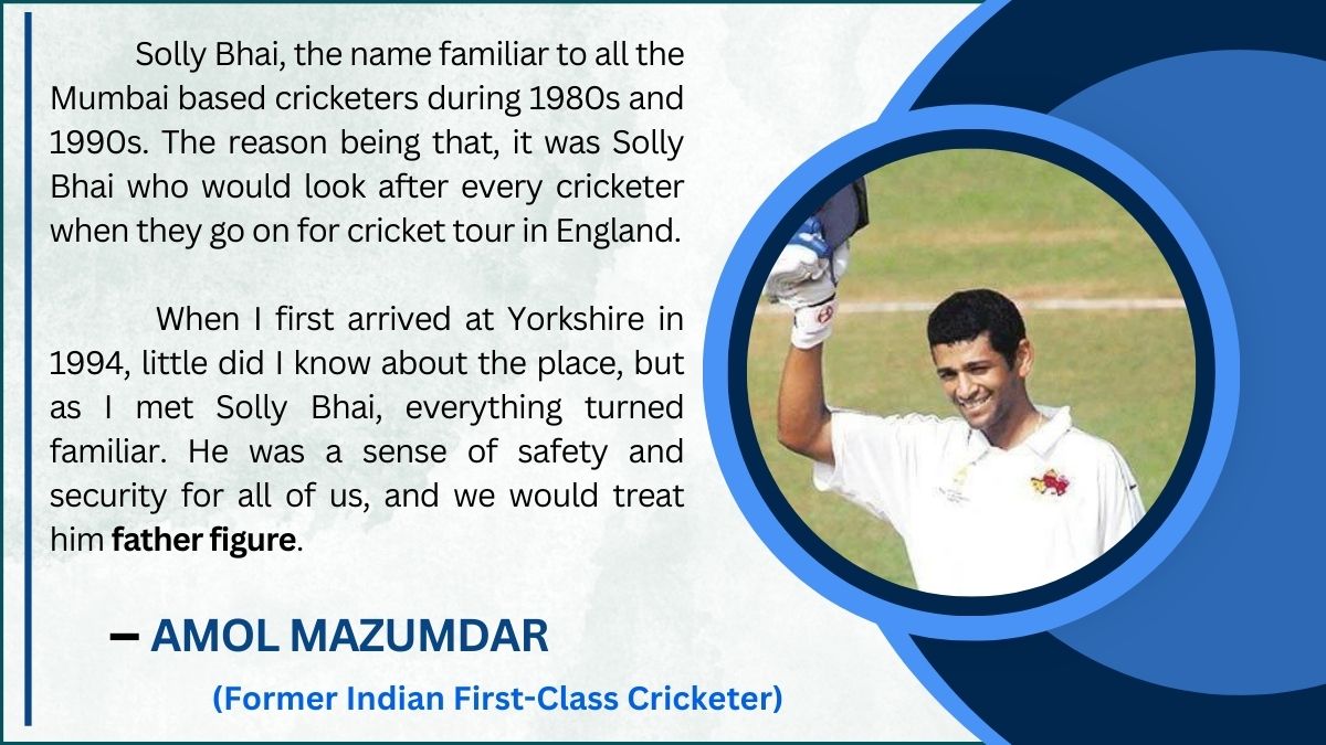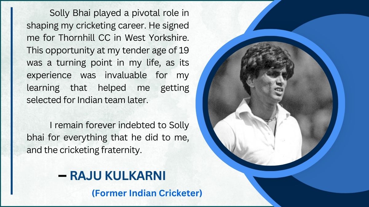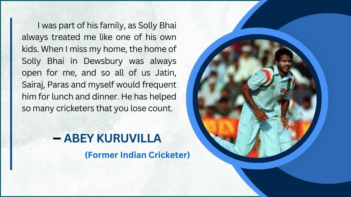 Solly is the man behind securing Sachin Tendulkar's signing with Yorkshire in 1992, a historic move that forever transformed the Yorkshire cricket towards a better unity and a greater inclusivity, and had encouraged many Asians to pursue the sport seriously. He is also a man behind organising numerous benefit/testimonial matches for the well-being of cricketing fraternity. This includes several matches for popular Yorkshire County players such as Sir Geoff Boycott, Richard Lumb, David Bairstow, and Jim Love, among others.