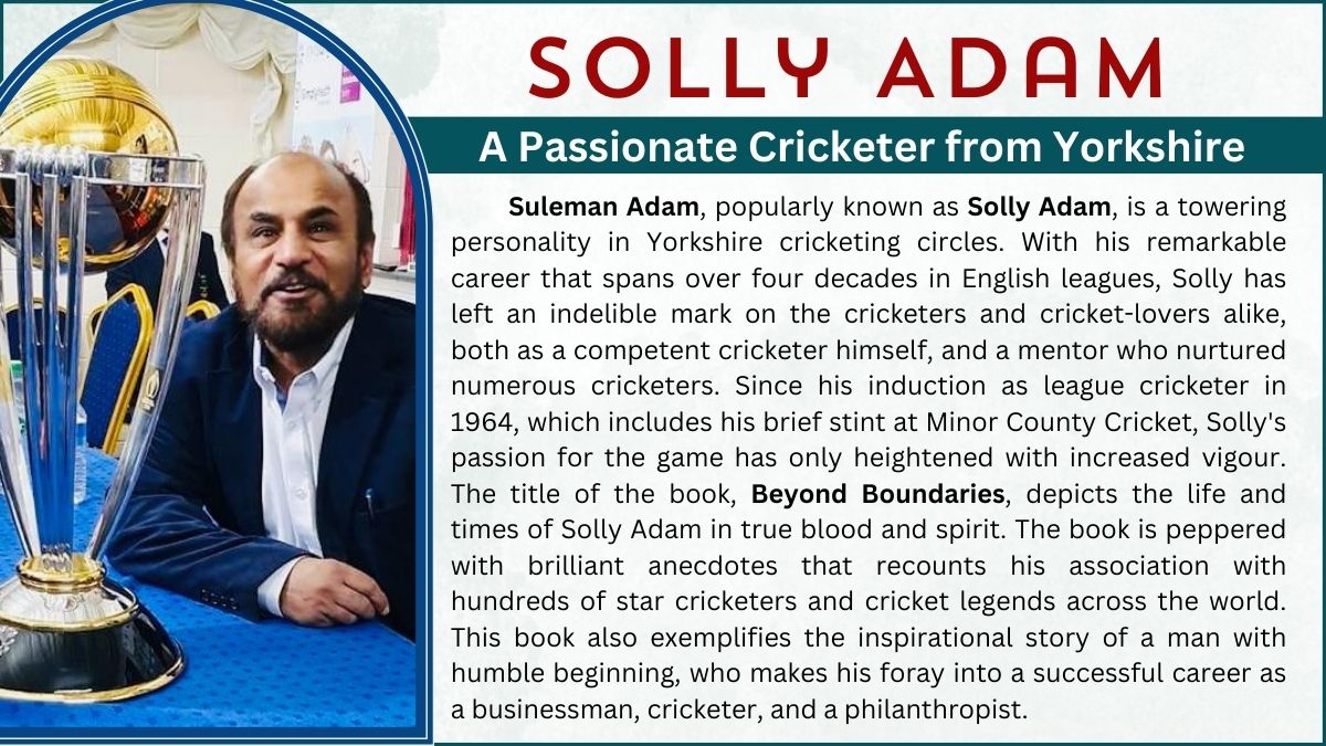Suleman Adam, popularly known as Solly Adam, is a towering personality in Yorkshire cricketing circles. With his remarkable career that spans over four decades in English leagues, Solly has left an indelible mark on the cricketers and cricket-lovers alike, both as a competent cricketer himself, and a mentor who nurtured numerous cricketers. Since his induction as league cricketer in 1964 which includes his brief stint at Minor County Cricket, Solly's passion for the game has only heightened with increased vigour.