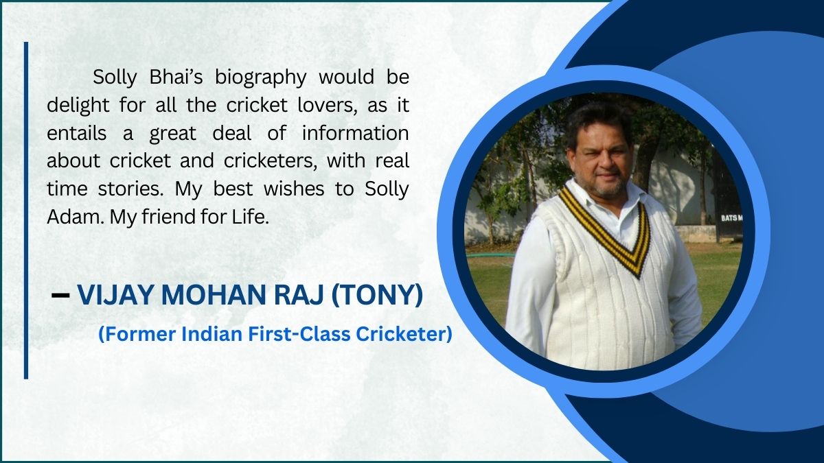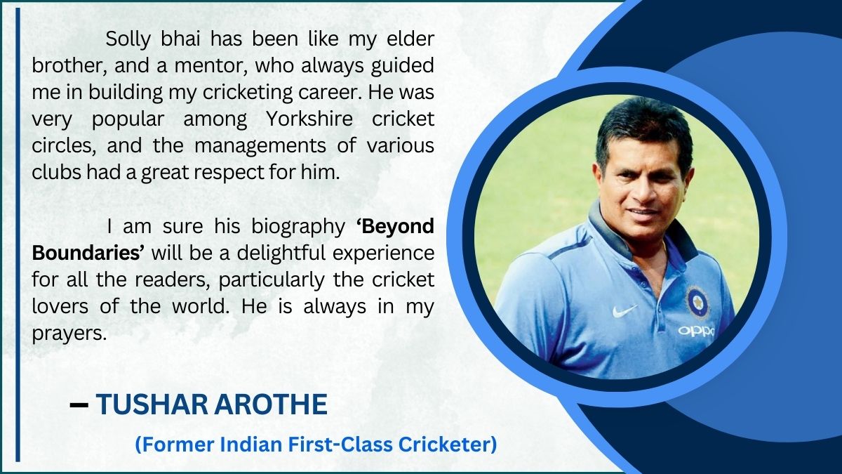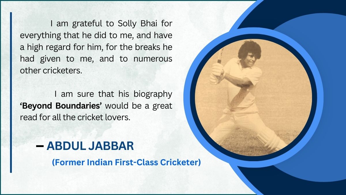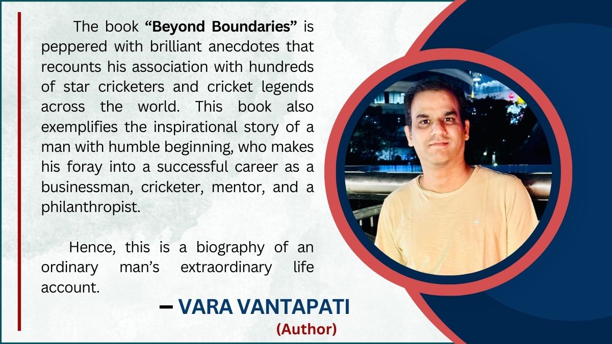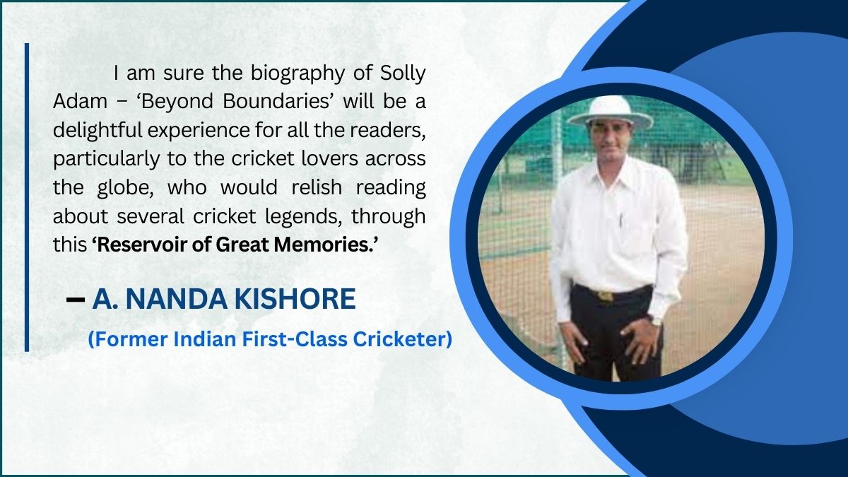 The title of the book Beyond Boundaries, depicts the life and times of Solly Adam in true blood and spirit. The book is peppered with brilliant anecdotes that recounts his association with hundreds of star cricketers and cricket legends across the world. This book also exemplifies the inspirational story of a man with humble beginning, who makes his foray into a Successful career as a businessman, cricketer, and a philanthropist.