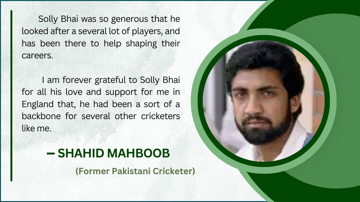 Solly Adam mentored and nurtured hundreds of young talents (Over 400 cricketers who were mainly from South-Asia, but also some local Yorkshire men), and among whom several cricketers rose to their eminence as international cricket stars and star legends.